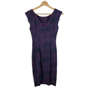 French Connection Purple & Blue Lace Print Knee Length Sheath Dress 0