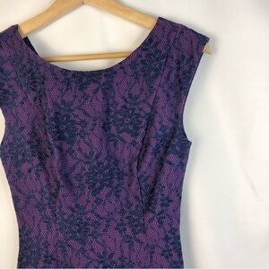 French Connection Purple & Blue Lace Print Knee Length Sheath Dress