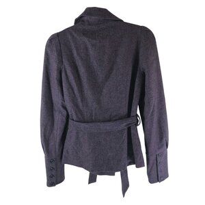 French Connection Purple Wool-Blend Belted Womens Peacoat Jacket Puff Sleeve 4