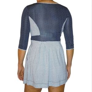 French Connection Quarter Sleeve Mini Dress Blue Grey Polka Dot Size 4