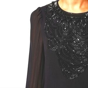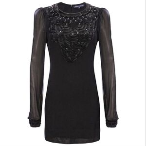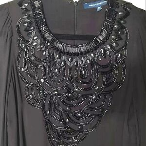 French Connection Rebecca 100% SILK Minidress Women Black Beaded Lined Size 2