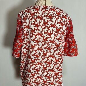 French Connection Red Blouse with Flutter Sleeves and Ruffled Style Large