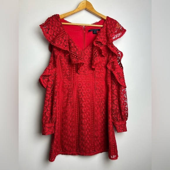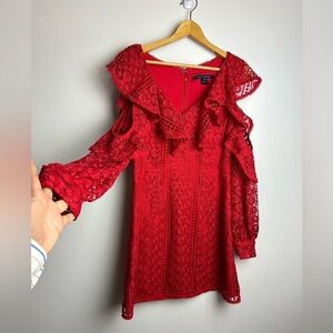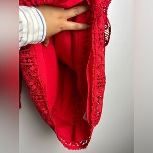 A well-made and gorgeous red dress. The lace combined with the cut and color makes it cute, sexy, and flirty. It's a size 8, but please go by the measurements. I purchased it on Poshmark, but I never wore it. I'm putting it back on the market b/c it ended up not quite fitting my style like I thought it would.