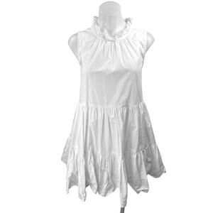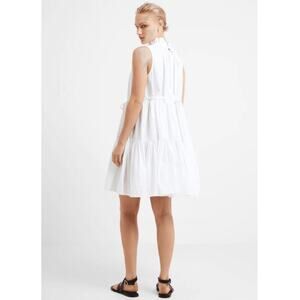 French Connection Rhodes Poplin White Sleeveless Ruffle Mock Neck Tiered Mini Dress