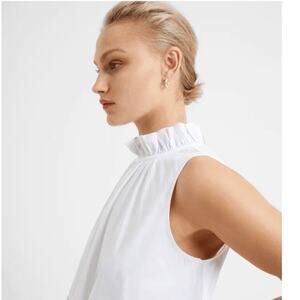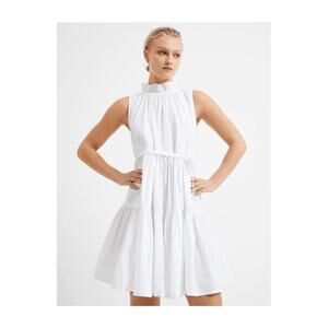 French Connection Rhodes Poplin White Sleeveless Ruffle Mock Neck Tiered Dress