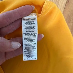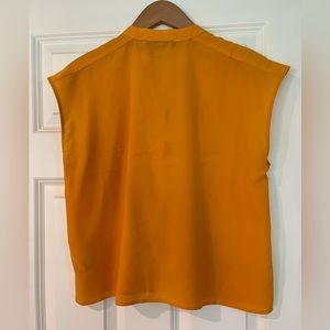 French Connection tangerine colored sleeveless blouse slightly cropped from a traditional blouse.