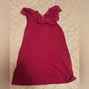 Elegant ruffled top. Vibrant red color. Perfect for any occasion. Labeled size 2 b it can fit up to size 10.