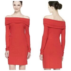 French Connection SZ 6 Bodycon Dress Off-Shoulder Cowl Neck Stretch Long Sleeve Scarlet Red Please check the measurements to ensure a proper fit. Bust: 28 1/2" Length from under the arm to the hem: 26" Measurements are approximate, laying flat and unstretched. Smoke free home.