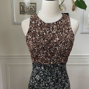 Where are my Swifties at? All over sequins is so popular right now as a result of Taylor Swift Eras Tour. This sleeveless shed is back with the top layer in a gold copper color the center band in a metallic gun metal silver and the bottom quadrant in black. Lay flat measures 15 inches armpit to armpit 12 inches straight across the waist and across the hip, but there’s about 3 inches stretch to those measurements with the fabric. Lined in polyester and spandex blend Mermaidcore mermaid core mcbling Taylor swift