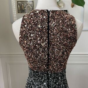 French Connection Sequin Cocktail Dress Metallic Colorblock Stripe Gold Silver 4