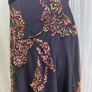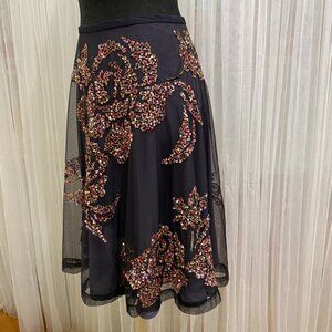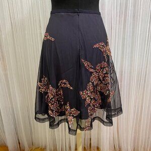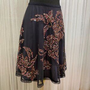 French Connection Sequin Mesh 2 Layer Skirt Large Floral Pattern Size Womens 14