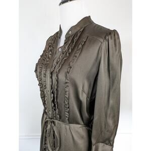 French Connection Shirt Dress Silk Ruffle Floral Button Victorian Brown Size 2