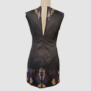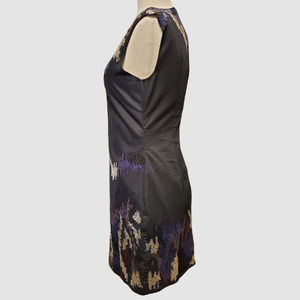 Beautiful, pre-owned, beaded dress by French Connection. Dress is quite heavy due to the beads which are a mix of purple, black and silver. Excellent condition--no holes, loose beads, stains, or rips.