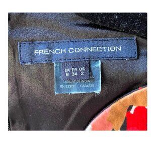 French Connection Size 2 Red Orange Black Floral Print V-Neck Sheath Mini Dress