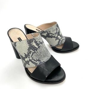 French Connection Size 8.5 Ursie Snakeskin Slid Block Heel Mule Sandals in Black