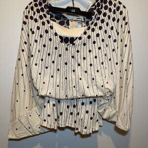 Bat wing loose top and skirt. Ivory with deep purple dots and black lines