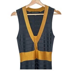 French Connection Slate Gray Blue Sleeveless V-Neck Bandage Sheath Dress 6