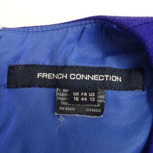 A stylish sleeveless blue dress designed by French Connection, offering a clean silhouette, back zip closure, and a comfortable fit.