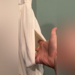French Connection fully lined, sleeveless, off-white dress with pockets.