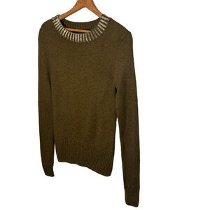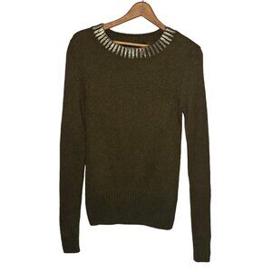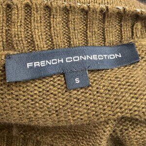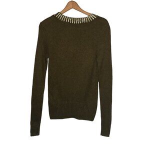 French Connection Small S Olive Green Gold Metallic Collar Yak Blend Sweater