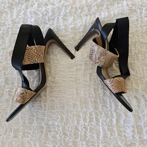 French Connection Snake Print and Black Strappy Sandals Size 9