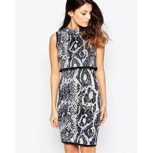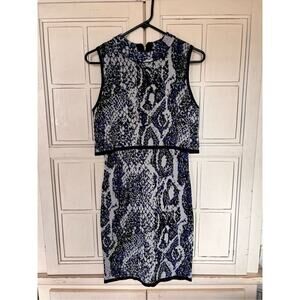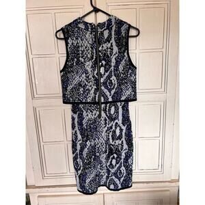 French Connection boa layer dress in perfect condition. Looks as though it’s two pieces but is all one piece. Thick sweater like material and it is fully lined. Zips in the back. Viscose, rayon and nylon. Measures 17” from armpit to armpit. 15” across the waist and it is 37” long.