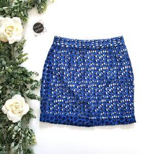 French Connection St. Tropez blue and white fast Wilma lace skirt with white skirt lining. Tag size 2. 100% Polyester.