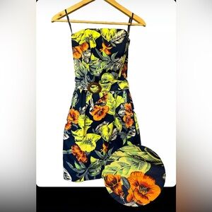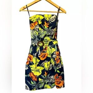 French Connection Strapless Tropical Mini Dress w/ Belt Size 4 Hawaii Vacation