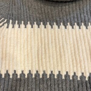 French Connection cowl neck sweater with wide white stripe; wide sleeves with cuff for fun style! Poly blend super soft and cozy