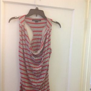 This cowl neck dips very low. You would want to wear a balconette bra or something similar with it.