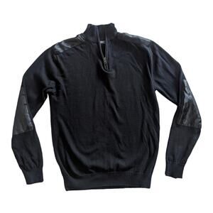 French Connection Sweater 1/4 Zip Elbow Patches Black Sz M Mens Soft 100% Cotton