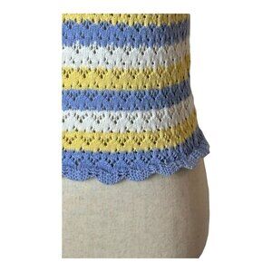 designer, luxury, knit, crochet, striped, stripes, colorful, casual, classic, classy, mature, mod, modern, tank, tank top, lightweight, comfy, Casual, Picnic, winter, fall, travel, vacation, beach, summer, spring, trendy, stylish, loungewear, minimalist, minimal, soft, v-neck, pullover, sustainable, organic, environment, lagenlook, v neck, Cabin, Cabincore, Rustic, Warm, Pullover, chic, glam, Wms, Size 6, Size 4, S, Small, Cropped, Crop, Crochet, Ladder Stitch, grannycore, grandmacore, coastal grandma, boho, bohemian, bohochic, festival, Cochella, retro, Y2K, quilt,