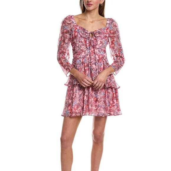 NWT French Connection Tiered Mini Dress in Sea Pink