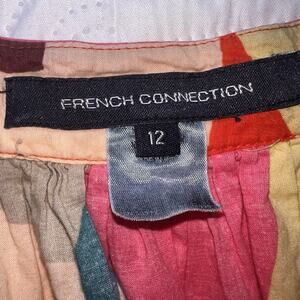French Connection Top Size 12 Colorful Abstract Flowy Flutter Sleeve Blouse Art.