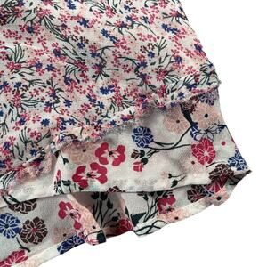 French Connection Top Womens 2 White Pink Multi Floral Chiffon Raw Edge Tank