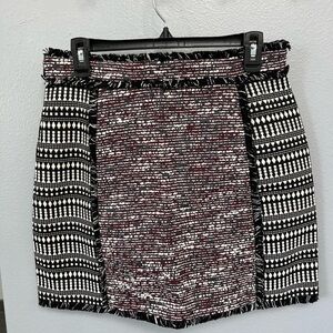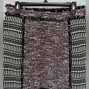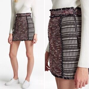 French Connection Tweed Tapestry Textured Fringe A-Line Skirt