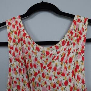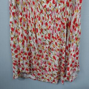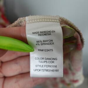 French Connection UK Style Dancing Tulips Draped Neck Top Sz XL Red Beige Floral