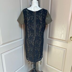 French Connection UK Style Lovelace Tee Dress Khaki Green/Black Sz 12