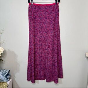 French Connection Verona Crepe MIDI Maxi Skirt with Slit. Raspberry Pink with Blue Ditsy Floral Design. Pink stretch gross gain waistband. Like new. Size US 6. Measures: 13” at the waist, and its 34” long in front and 36“ long in back laying flat. Slit is 20-1/2”. Buy with confidence, I have great reviews, and ship quickly with care. Clean, non-smoking home. French Connection Midi Skirt Maxi Skirt Pink Blue Floral Ditsy Small Flowers Spring Summer Fall Lightweight Flowy Bohemian Boho Feminine Festival Pictures Aline
