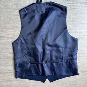 French Connection Waistcoat Mens 44 Blue Wool Blend Satin Lining NWT 4 Button