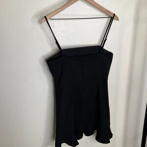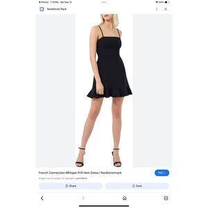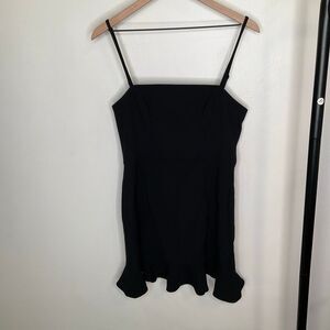 Frilly ruffles trim the hem of a lightly structured A-line dress finished with slender straps at the shoulders.