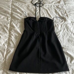 Halter neck ties dress Zipper in the back No pockets May have pet hair