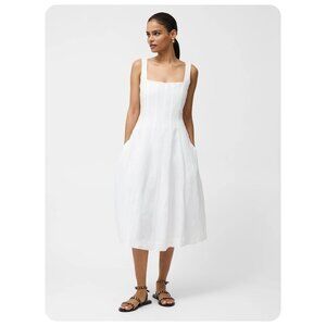 French Connection White Birdie Linen Sleeveless Square Neck Dress sz US 4