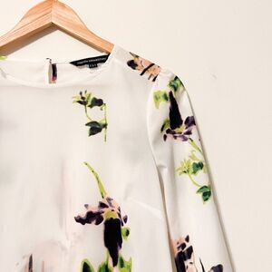 French Connection White Pink Purple Green Floral Watercolor Quarter Sleeve Top