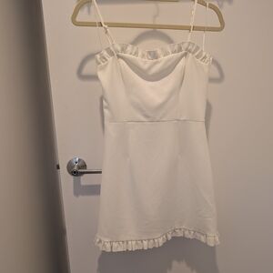 White mini dress with ruffle details with removable and adjustable straps. only worn once