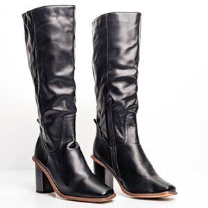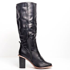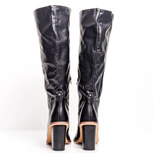 French Connection Women Black Vegan Leather Stretch Heel Round Toe Tall Boots 10