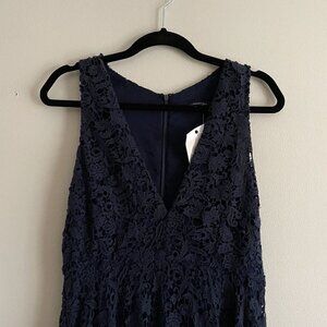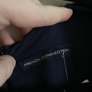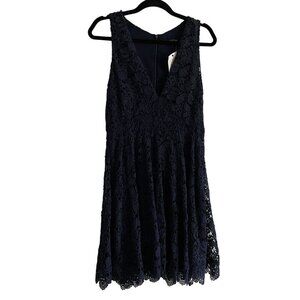 French Connection Women SZ 8 Navy Blue Lacy Overlay V Neck Fit & Flare Dress