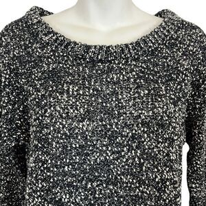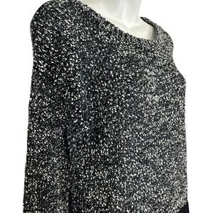 French Connection Women's 100% Cotton Tweed Long Line Gray Black Sweater sz M
