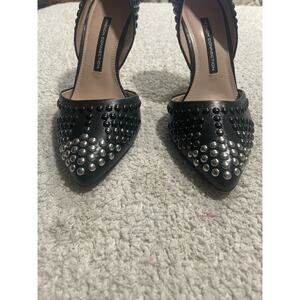 French Connection Women's Size 8.5 Maggie Point Toe Pumps Studded Leather Shoes Black