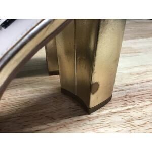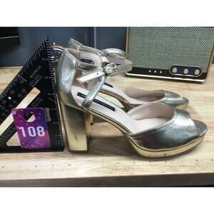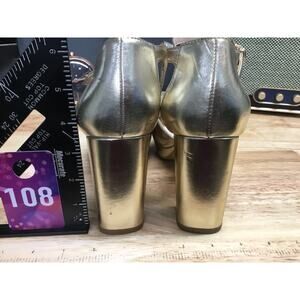 French Connection Women's 9 Gold Ankle Strap Platform Peep Toe High Heel Pumps